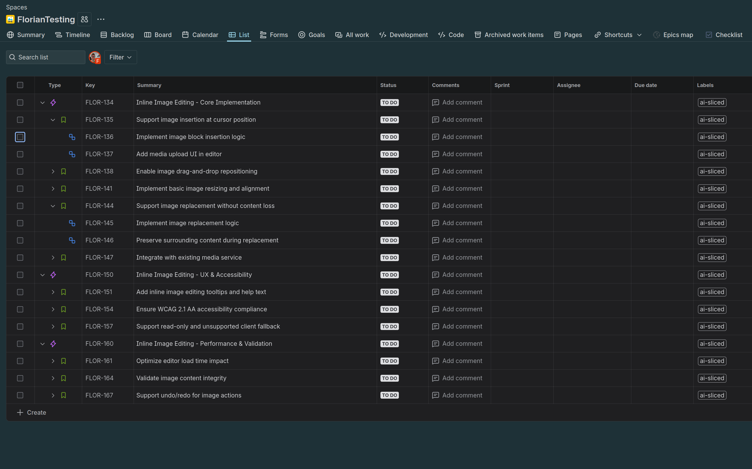 Jira epic link field not set; using parent linkage for story Support image insertion at cursor position.